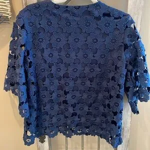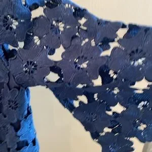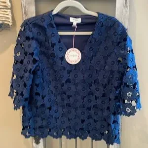 Navy blue. Vneck. Short sleeve. Body is lined, sleeves are not. Great summer top!