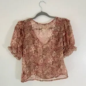 NWT New Anthropologie Floral Puff Sleeve Ruffle Boho Cottagecore Blouse Top M