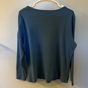 St. John's Bay Womens Rich Teal Long Sleeve Round Neck Essential Tee Size XL