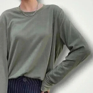 Solid Relaxed Round Neck Long Sleeve Tee