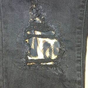 Stylish black distressed jeans with a trendy look. Perfect for casual wear.Judy Blue size 15/32. Black distressed with leopard print inlay. Skinny fit.