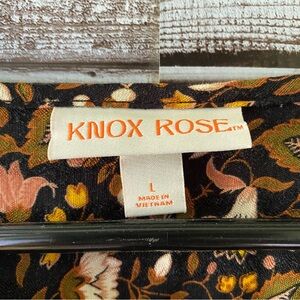 This Women's Long-Sleeved Blouse by Knox Rose is a Size L and is made of 100% Rayon.It is black in color with a floral print and cutout with a tie detail as shown. Gently used. Great Condition!