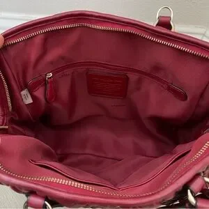 Elevate your style with the Coach Red Leather Handbag. This elegant bag features a rich red color, perfect for any occasion. Crafted with quality leather, it offers both durability and sophistication.