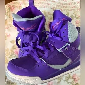 Stylish fierce purple high-top Jordan 45s. Incredibly light wear, only worn a few times on a dance floor. Size 6Y