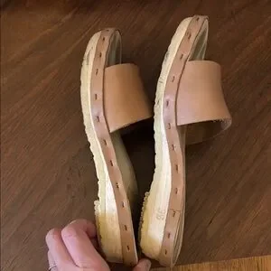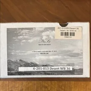 No. 6 low clog sandal in color: Desert. Size 36 is approximately US 6.5. Worn but excellent quality. Leather and wood in good condition.