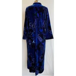 Excellent condition Oscar De La Renta Velvet Paisley Zip Vneck Pocket Maxi Nightgown. Size L. 90% Polyester, 10% Spandex. Pockets at sides.