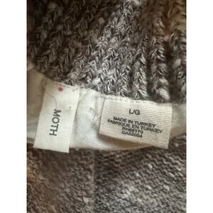 Moth (Anthropologie) sweater wrap midi skirt in "oatmeal". Ribbed knit waistband. Slim maxi silhouette. Pull on styling. Overlapping front. Lined to about the knees in 100% knit viscose jersey. Large and small nubs and lumps in the knit. A brown, cream, and tan knit yarn.5