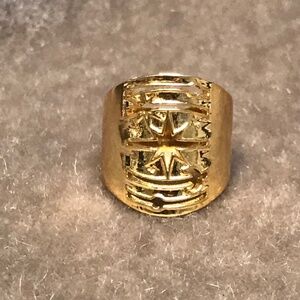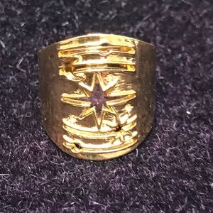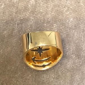 Yellow Gold plated over sterling. Delicate star and moon cutouts. 3/4 high in front. US size 6 Never worn.