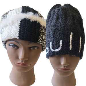 "Cruella de Vil" Ribbed Beanie w/Fur & "Bully" Crochet Beanie, Adult, Handmade