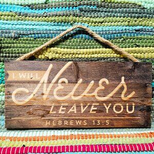 Decorative Home Décor "I Will Never Leave You Hebrews 13:5" Wood Sign Plaque NWT