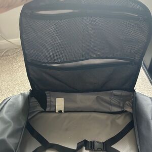 It’s been used but has recently been in smoke-free storage since I’m not traveling as much. It has a bit of exterior wear, and the inside is in excellent shape with all functioning zippers and has no stains. The bag is awesome and feels indestructible, and it has a lot of life left.