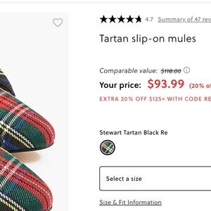 Brand new with Tags, currently on sale for $94 on site but size 6.5 size is sold out. A bit too small for me since im a 7/7.5 . Super cute plaid colored mules. These shoes are a stylish and festive addition to any holiday outfit, receiving numerous compliments from wearers. Most customers find them comfortable, with many noting they are true to size!