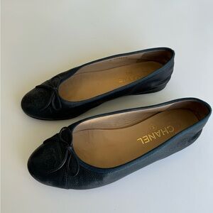 stunning Chanel ballet flats with CC detailing on the toe. Great vintage condition with wear on the soles