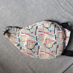 Kavu Womens Rope Bag Pack Sling Women's Beige Pink Blue Canvas Geo Pattern