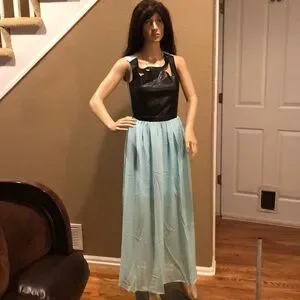 Blue and Black Faux Leather Sleeveless Maxi Dress