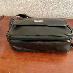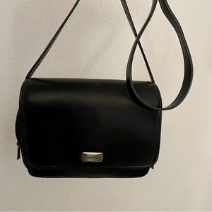 Feel real black vegan leather with brushed nickel hardware crossbody shoulder bag