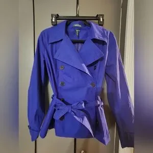 Lauren Ralph Lauren Blue Double Breasted Belted Jacket - size Large - excellent condition
