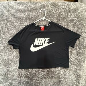 Elevate your casual style with this Nike Women's Black Crop Top. Perfect for workouts or everyday wear, this top combines comfort and iconic branding.