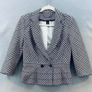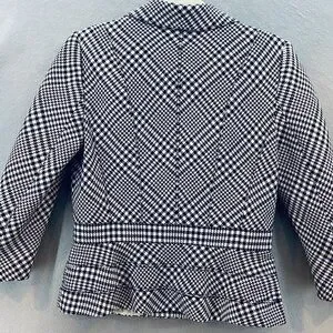 WHBM Black White Houndstooth Fitted Peplum Blazer SZ 6 Classic Feminine