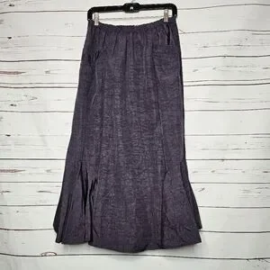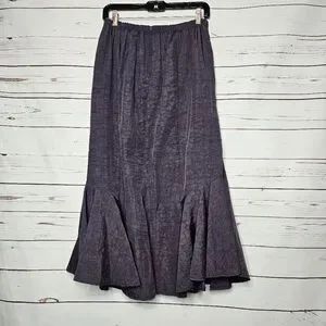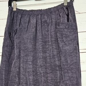 Dorman Tulip Skirt. Purple. Elastic Waist with Hidden Back Zipper. Front Slip Pockets. Full Tulip Hemline. NWT. 100% Polyester. Heavier Material. Size X-Large. Flat Lay Measurements: Waist 13" Hips 24" Length 33". This elegant purple skirt is perfect for any occasion. Its stylish design offers both comfort and sophistication.