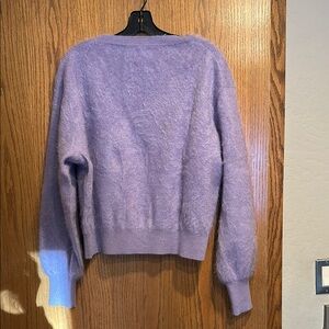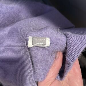 JCrew brushed cashmere. V neck, slightly cropped. Worn once and dry cleaned. Cut tag due to being bulky. Beautiful color, love it just too cropped for me.