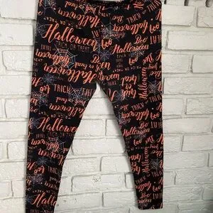 Celebrate the spooky season with Shosho's black and orange leggings, featuring a vibrant Halloween-themed text print. These full-length, form-fitting leggings are crafted from a stretchy material for ultimate comfort and style. The thick waistband ensures a secure fit, making them perfect for any festive occasion.
