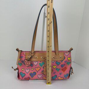 Authentic Dooney & Bourke Tassel Zip Top Heart Print Shoulder Bag.