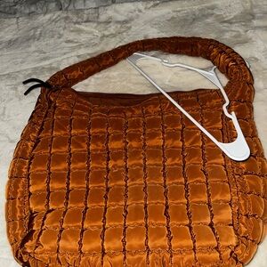 Orange Quilted Hobo Bag with Leather Finish