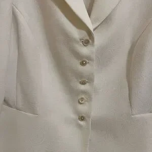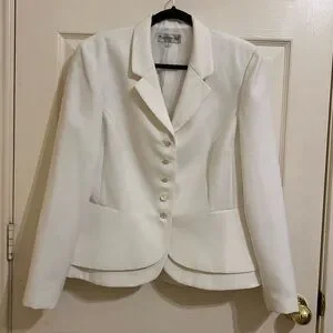 This elegant white blazer is perfect for any occasion. Its classic design offers a sophisticated look.
