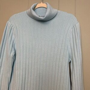 Talbots Ribbed Knit Turtleneck Classic Sweater Womens XL Blue Cotton Stretch NWT