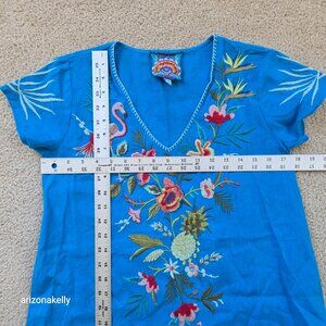 This is the dress version of the Nohea, not the tunic top. Never worn, never washed. Split hem. V-neck. No damage. The embroidery is flawless. No pet hair. No odors.