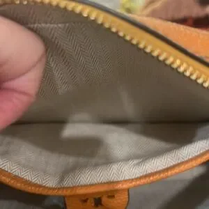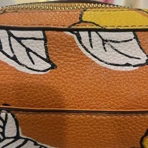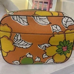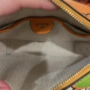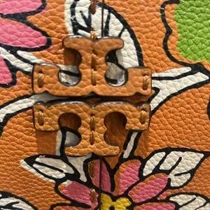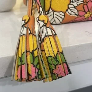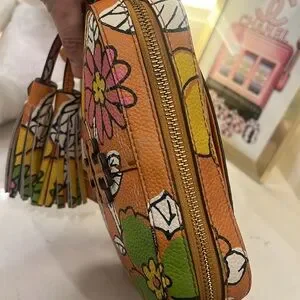 Please note some signs of wear. Couple of pen marks inside the bag, outside the bag on the top front and back some dirt on the leather. Please see all pictures. This is a beautiful flower print bag with minor signs of wear.