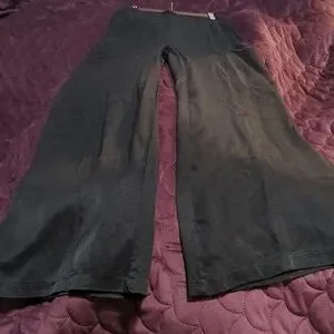 Stylish wide leg pants in black. Slight shine to the material. Made out of something like the old 40's silk gowns but made of modern materials. This is a discontinued Foxblood pant as far as I can tell. These are new with the tags. Outseam is 44.5" approx and waist goes from 13" to 16" with stretch. Front rise is about 16". Basically for a size small but tall as the legs seem pretty long though I imagine they are meant to be high waisted. They do have functional pockets.