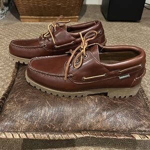 NWOT Sebago Men's “Ranger Waxy” Brown Leather Boat Shoes Sizes 8.5 & 10