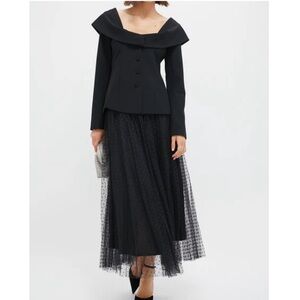 Made in a classic color that can be worn all year, the flattering Monroe Top boasts a scoop neck, a fit-and-flare silhouette, and chic buttons down the front. Pair with black trousers or the Tulle Kirsten Skirt and heels for work events and dinner parties alike!