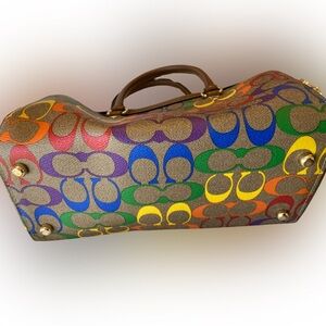 Coach Pride Collection Rowan Satchel – Brown Signature with Rainbow Strap