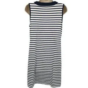 Land's End Womens Sleeveless Cotton Striped Navy White Shift Dress Size Small