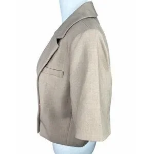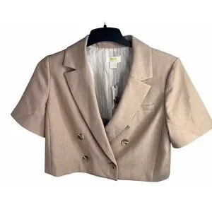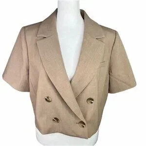 Anthropologie Maeve Beige Double-Breasted Cropped Blazer Short Sleeve Size US 14