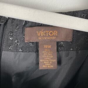 Victor Alfaro Black Metallic Sheath Dress Size 18W LBD Event Glam Quiet Luxury