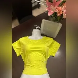 Brighten your wardrobe with this stylish vibrant yellow workout top from Bombshell Sportswear. New with tags size XL.