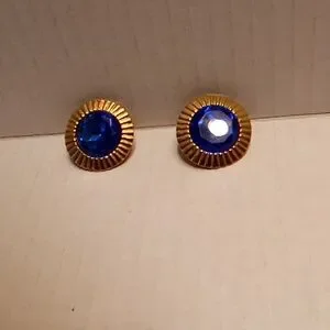 Elegant goldtone stud earrings featuring a striking blue Perfect for adding a touch of sophistication to any outfit.
