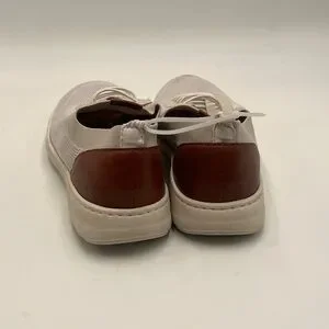 These Born sneakers showcase a cream and brown color palette, featuring a breathable textured fabric upper for a relaxed, casual style. The brown accent on the heel adds a touch of sophistication, while the lightweight sole ensures comfort and flexibility for everyday wear.