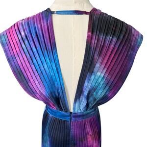 Tags: gala, formal, cocktail, event, special occasion, wedding guest, evening, plunge neck, pleated, accordion, night, fancy, colorful, tie dye, multicolor, long dress