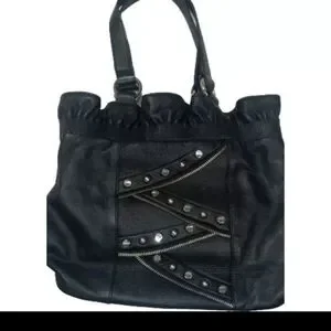 Bodhi Ruffle Silver Stud Leather Tote. Soft Black Handbag Bag Like New.
