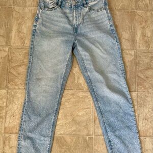 American Eagle Strigid Mom Jeans in size 6. Blue Breeze color. Worn once! Rigid in the front. Stretchy in the back. Magic all over with innovative 50/50 construction