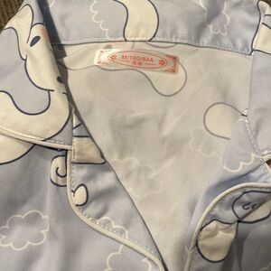 New, never worn sleepwear set that comes with a button up short sleeve top, elastic banded shorts (mid-thigh length), and elastic banded long sleep pants.