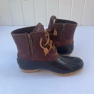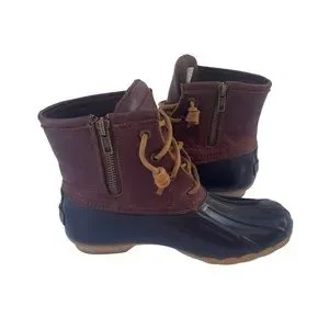 Sperry Saltwater Women's Brown Leather Rubber Zip Up Duck Boots