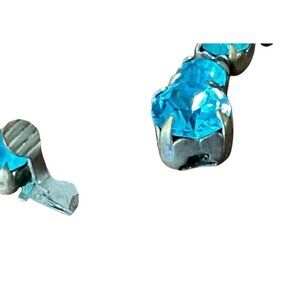 Vintage Silver-Tone Aquamarine Blue Rhinestone Crystal Necklace 16"