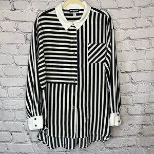 KARL LAGERFELD PARIS High Low Striped Button Down Shirt XL