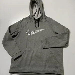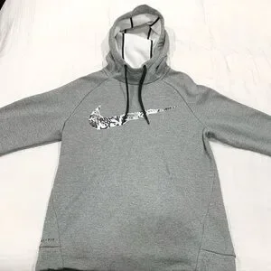 Nike Dri Fit Therma Fleece Running Turtleneck Big Swoosh Grey Pullover Hoodie XL